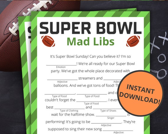 Super Bowl Mad Libs Printable Super Bowl Game Super Bowl Etsy